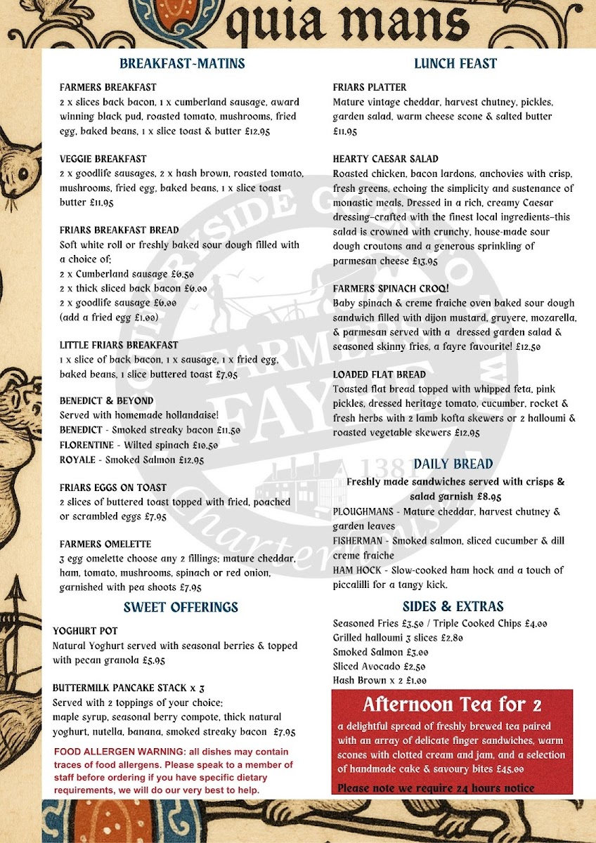 Welcome to Farmers Fayre, a hidden gem nestled in the scenic grounds of the National Agricultural Centre in Stoneleigh, Kenilworth. This family-run establishment prides itself on offering a menu that's a celebration of local produce and culinary passion. From hearty breakfast options like the Farmers Breakfast (£12.95) to delightful brews like a Lovely Latte (£4.00), Farmers Fayre caters to diverse palates.